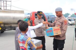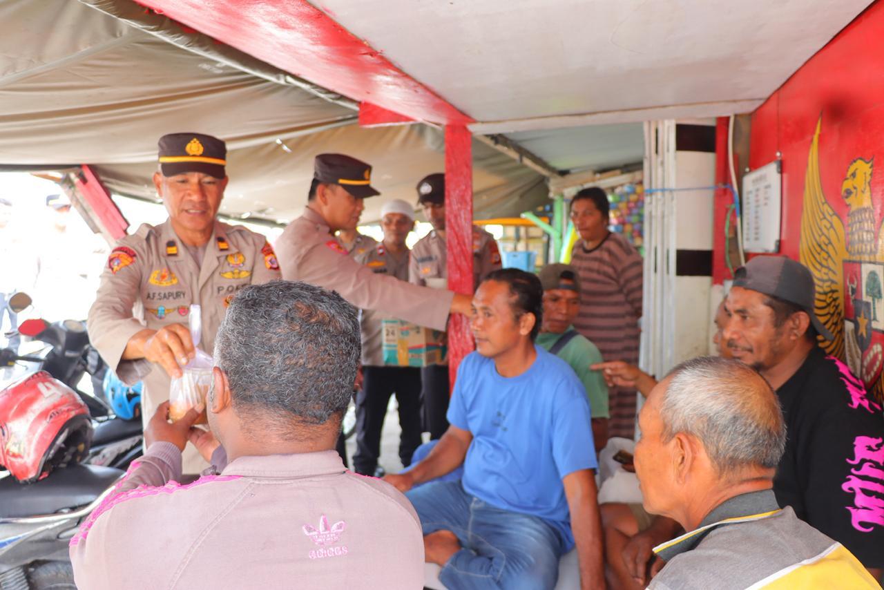 Agenda Jumat Berkah, Personil Sat Polairud Polres Tual Bagi Makanan Gratis