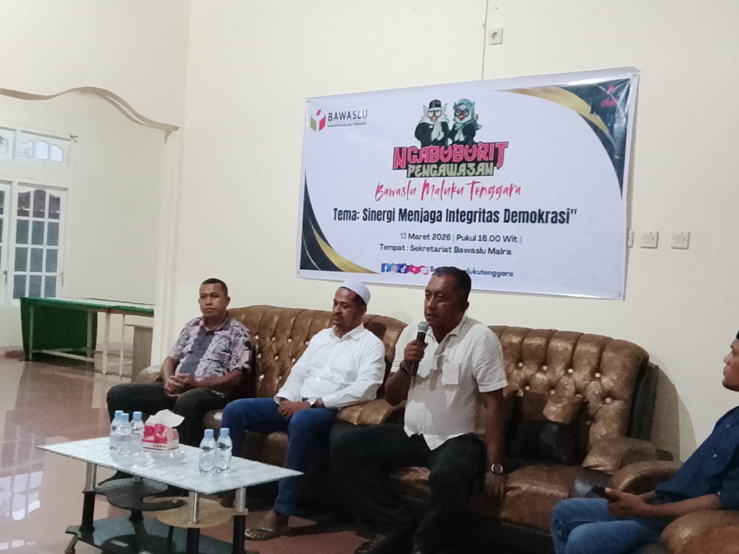 Kegiatan ngabuburit yang bertempat di Aula Sekretariat Bawaslu Malra, Jumat (13/3/2026), dibuka oleh Ketua Bawaslu Malra Richardo E. A. Somnaikubun, bersama Komisioner Bawaslu Marselus Hungan dan Alwi Al Hamid.