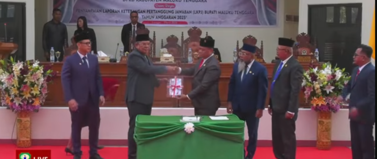 Ia kemudian memberikan waktu kepada Bupati Muhamnad Thaher Hanubun untuk menyampaikan nota LKPJ tahun anggaran 2025, dilanjutkan dengan penyerahan dokumen kepada Pimpinan DPRD.