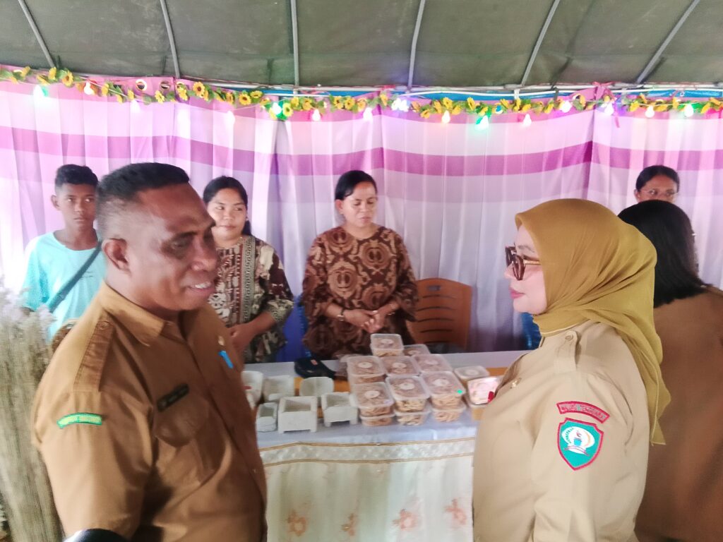 Berbagai produk-produk UMKM lokal mengisi setiap stand-stand pameran yang mengelilingi lapangan baik produk kerajinan tangan berupa gelang, anyaman nyiru daun kelapa, umbi-umbian, hingga produk olahan makanan seperti abon ikan, keripik pisang, enbal aneka rasa, hingga minyak kelapa asli yang telah diolah dan memiliki label dan brand.