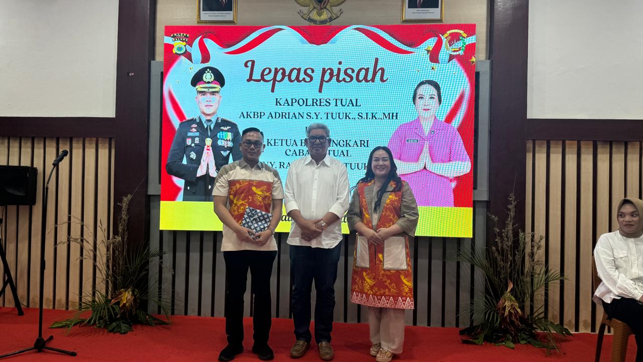Tual – Kepolisian Resor Tual menggelar acara Lepas Pisah untuk Kapolres AKBP Adrian S.Y Tuuk, SIK, MH bersama keluarga yang akan berpindah tugas.