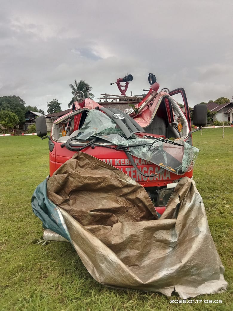 Mobil Damkar Malra Rusak Tertimpa Pohon 3 Personil Cedera Padamkan Kebakaran Di Wab Lumefar