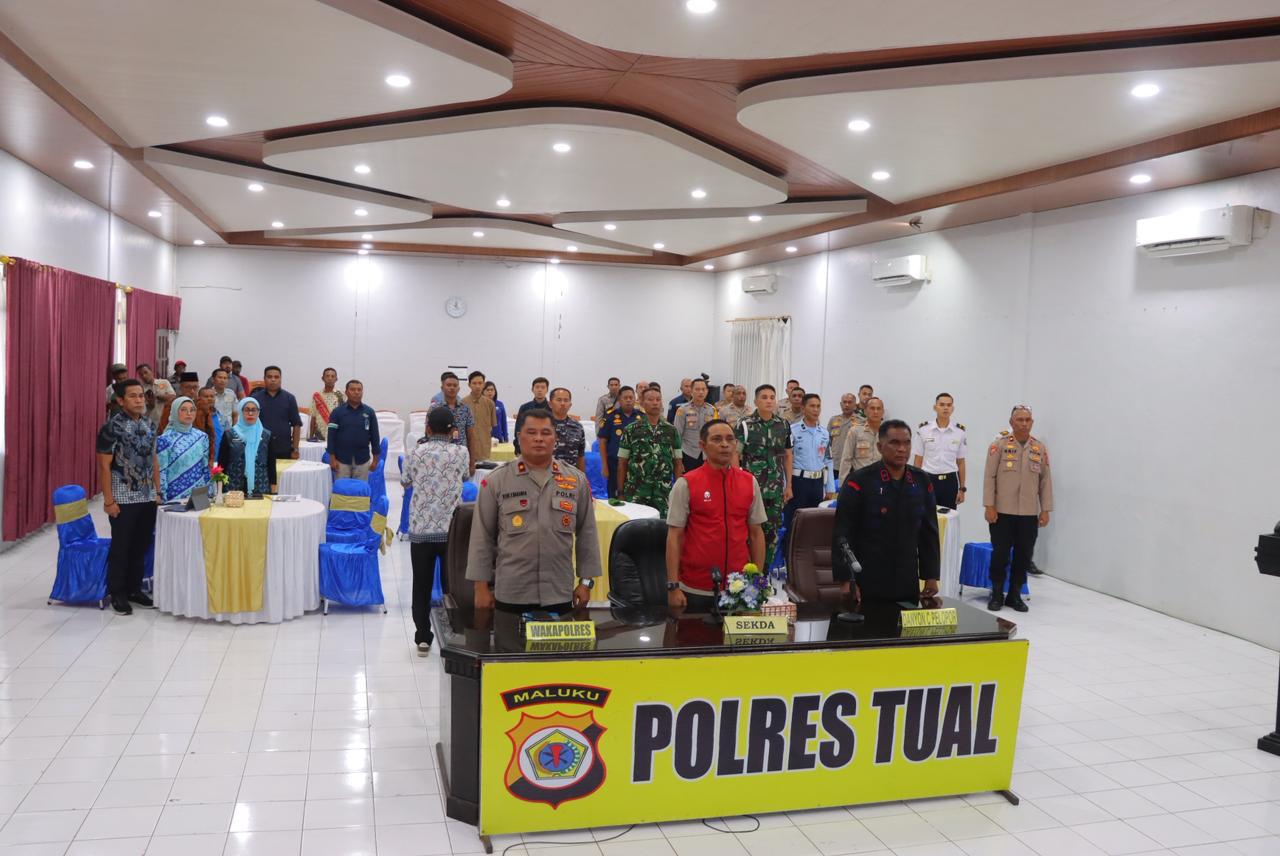Tual, Kepolisian Resor Tual bersama Pemerintah Daerah Kota Tual menggelar rapat koordinasi lintas sektor dalam rangka kesiapan operasi ketupat salawaku 2026 yang bertempat di Pada hari Aula Jana Nuraga Polres Tual, kamis (5/3/2026).