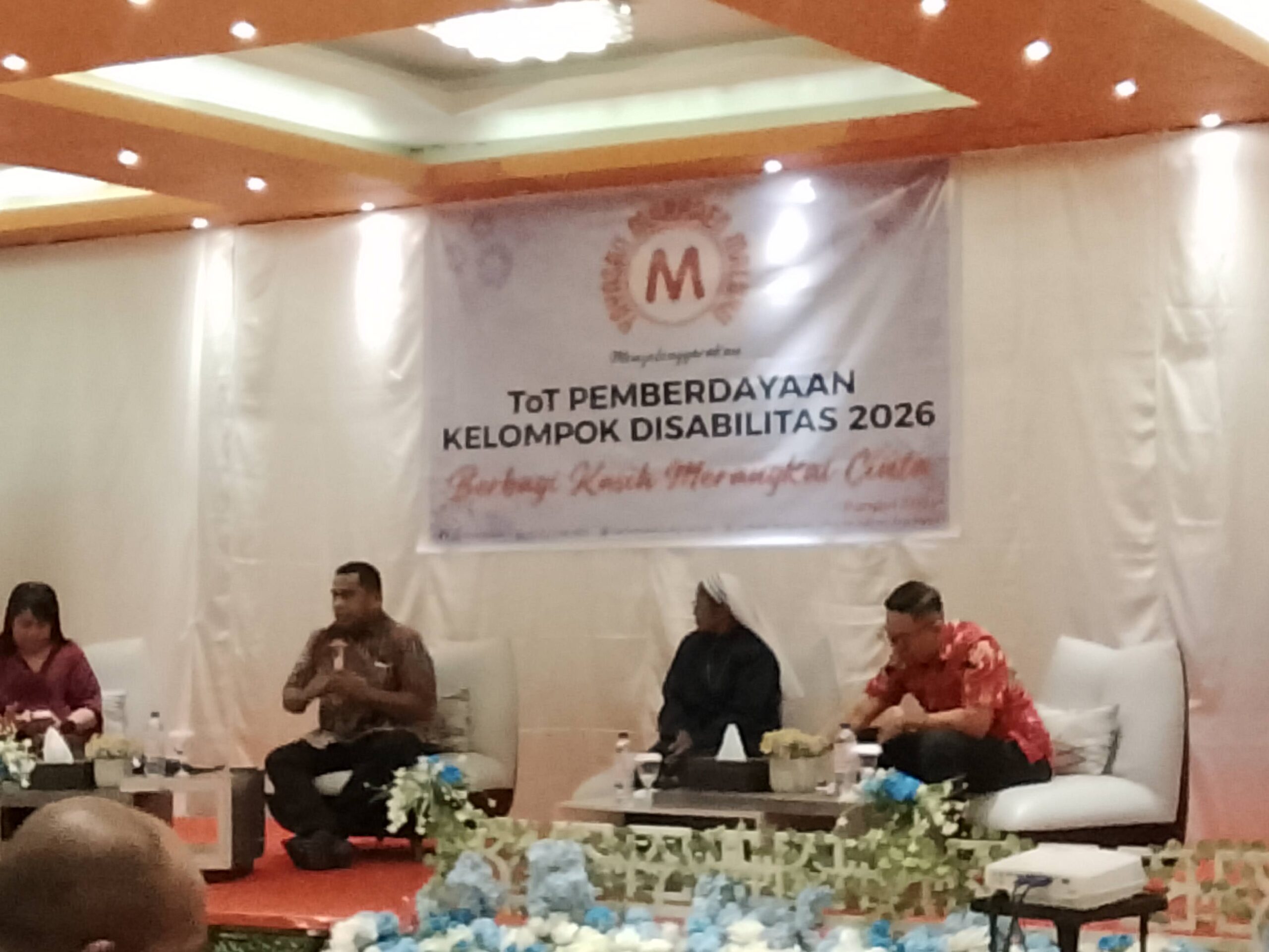 Langgur, Yayasan Marhaen Maluku menggelar kegiatan diskusi yang mengusung Pemberdayaan Kelompok Disabilitas dengan melibatkan Kabupaten Maluku Tenggara dan Kota Tual bertempat di BallRoom Grand Villia Hotel, Selasa (7/4/2026).
